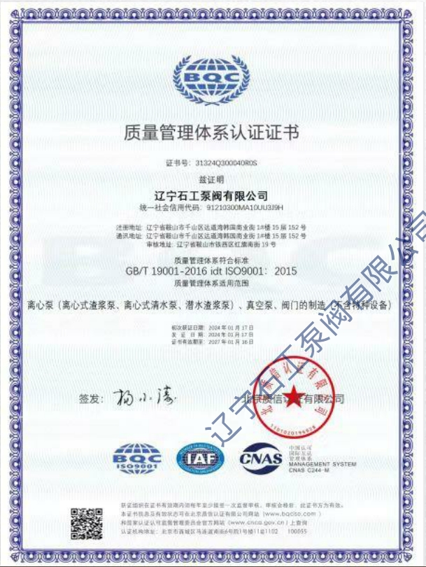 遼寧石工泵閥 有限公司 致力于研究、設計、生產(chǎn)及銷售各種工業(yè)水泵。公司秉承“質量為主,客戶至上”的原則,為客戶提供渣漿泵、壓濾機入料泵、液下泵、清水泵、多級泵、雙吸泵、管道泵、化工泵、氟塑料泵、潛污泵、深井泵、潛水渣漿泵、泡沫泵、沙礫泵等產(chǎn)品。公司有多年的生產(chǎn)經(jīng)驗,良好的管理體系和質量保證體系,我公司擁有雄厚的生產(chǎn)技術力量,完善的生產(chǎn)保障、質量保證監(jiān)督體系和專業(yè)型精神隊伍。 產(chǎn)品主要為煤炭、電力...